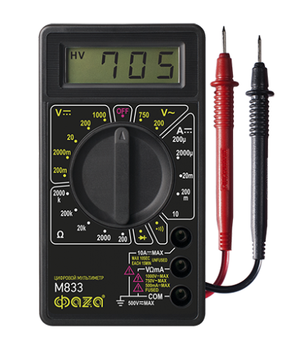 Функции: Измерение постоянного напряжения - Измерение переменного напряжения - Измерение постоянного тока - Измерение сопротивления - Диодный тест - «Прозвонка» - Встроенный генератор