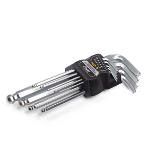Набор состоит из девяти шестигранных изогнутых ключей с шаром