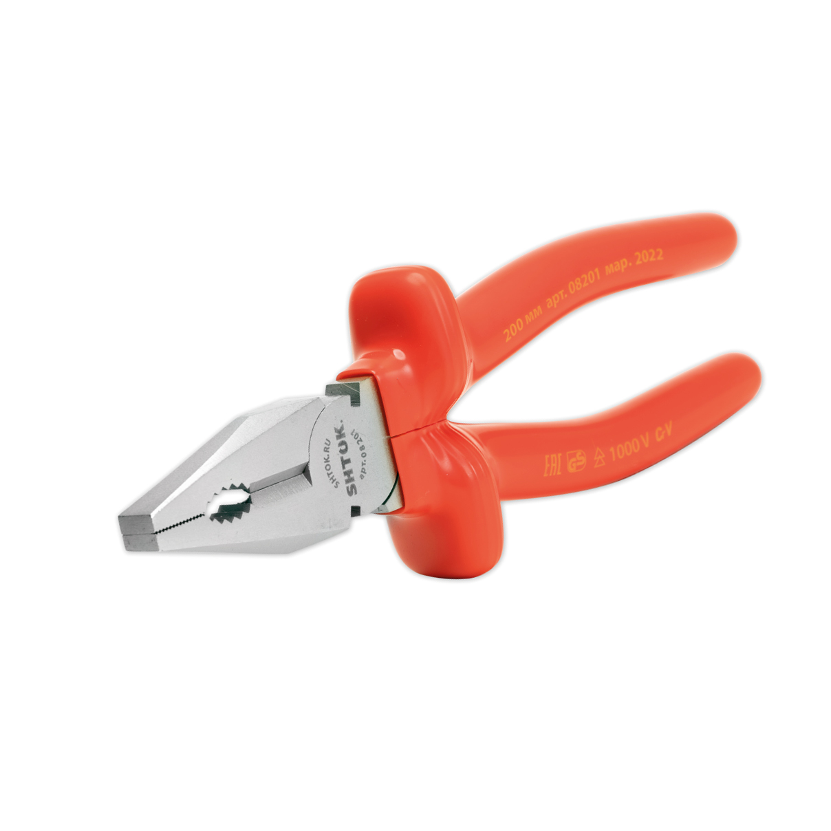 Рабочая часть диэлектрических пассатижей SHTOK 1000В 180 мм 08202, выполненная из хром-ванадиевой стали, увеличивает прочность инструмента.
