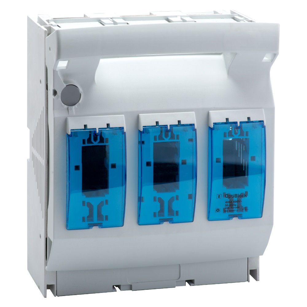 3 полюсный предохранитель-выключатель-разъединитель переменного тока на номинальный ток 400 А со способом установки стационарный с креплением на панели .