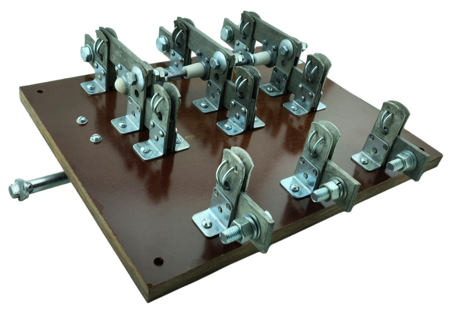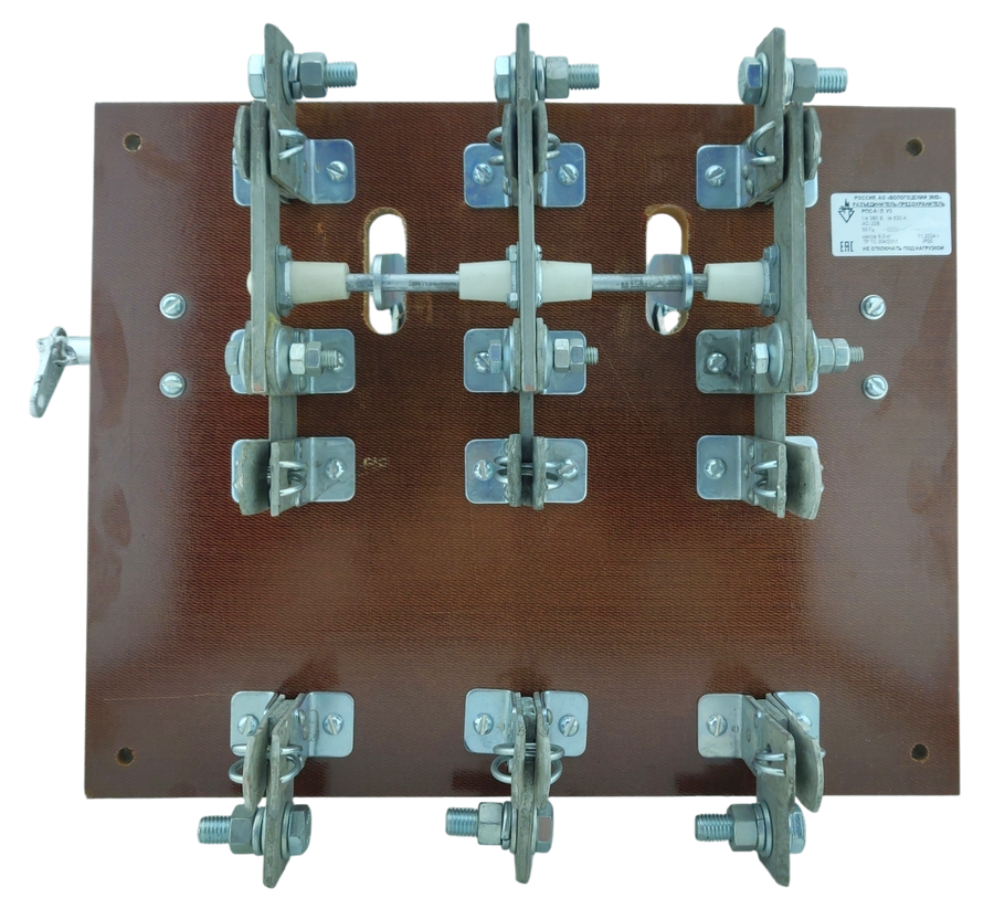 Основание аппаратов на номинальный ток 630А изготовлено из изоляционного материала — текстолита. Аппараты на номинальный ток 100÷400А изготовлены на металлическом основании с установкой на него фарфоровых изоляторов А-632.