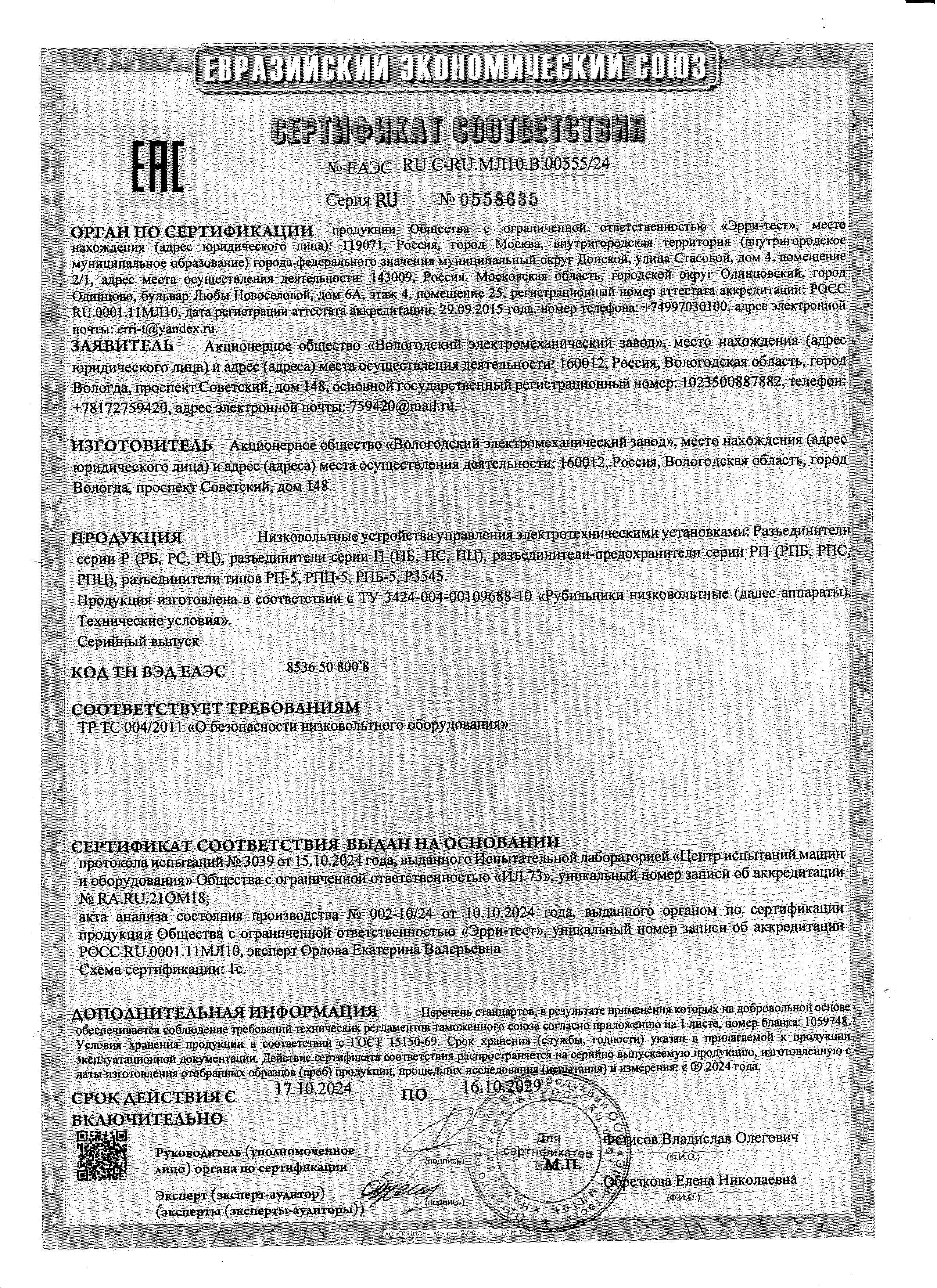 Производитель: Вологодский ЭМЗ