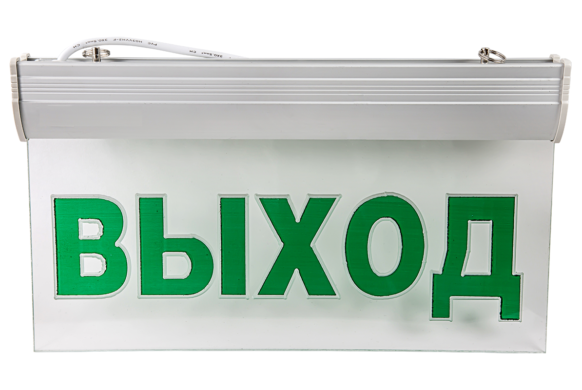 укомплектован наклейкой «ВЫХОД»