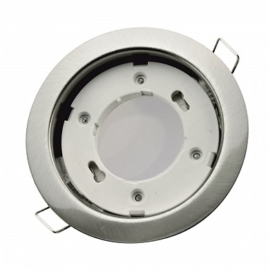 Корпус выполнен из металла со специальным стойким покрытием. Основание изделия - металлическая пластина с декоративным цветным покрытием. Узел крепления в монтажное отверстие в виде п-образной металлической пластины с двумя пружинными лапками-упорами.