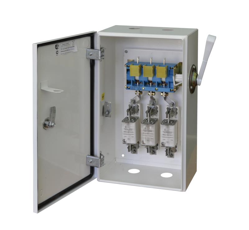 - Имеется возможность блокировки дверки от открытия при включённом рубильнике.